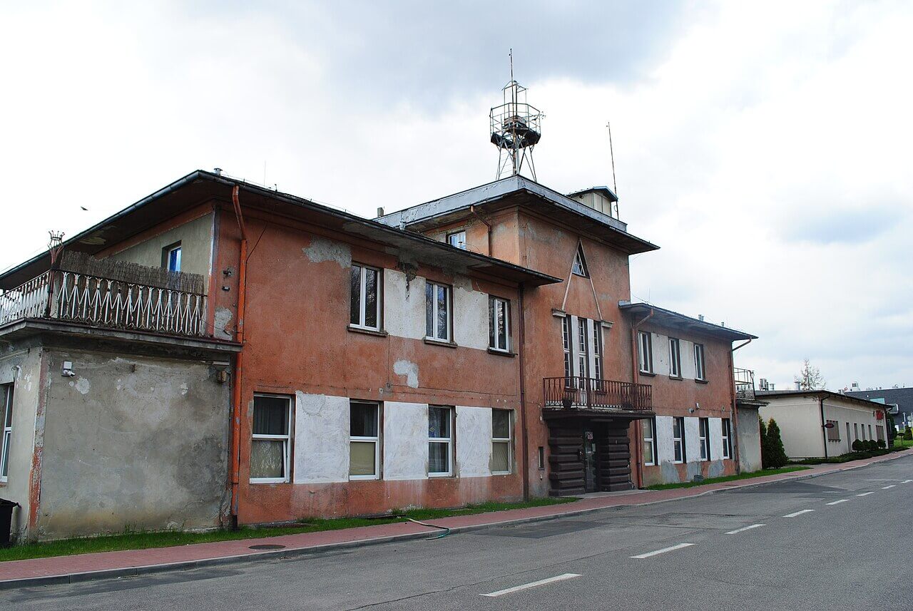 Prace budowlane rozpoczęły się w 1926 roku i trwały kolejne trzy lata. W pierwszym etapie budowy lotniska wykarczowano las, a także zdrenowano i zniwelowano teren pod pole wzlotów. Na budynek dworca lotniczego został rozpisany konkurs architektoniczny. Architekci zaproponowali na tamte czasy reprezentacyjny terminal lotniska w postaci zespołu niskich budynków z uwagi na planowaną eksploatację górniczą. Terminal poza salą odpraw i biurami posiadał też restaurację, pokoje hotelowe i szkołę pilotów. Budowę zakończono w 1929 roku i w tym samym roku lotnisko rozpoczęło swoją działalność.