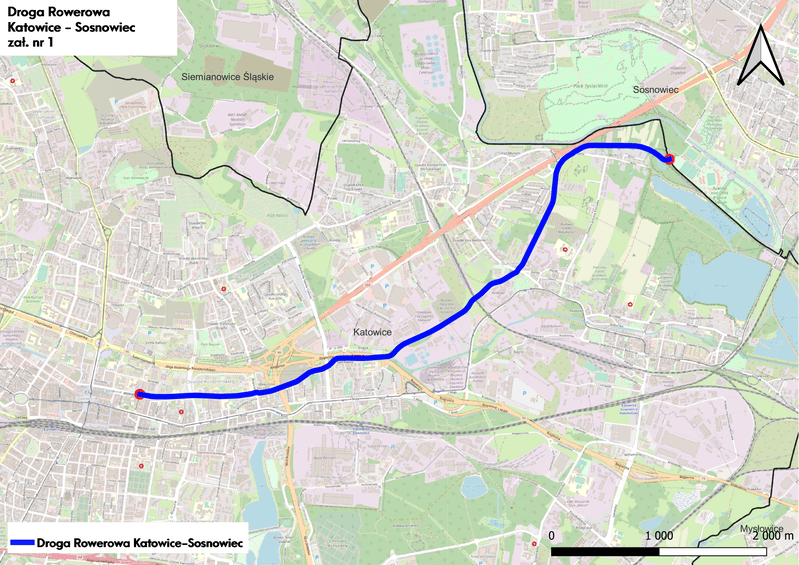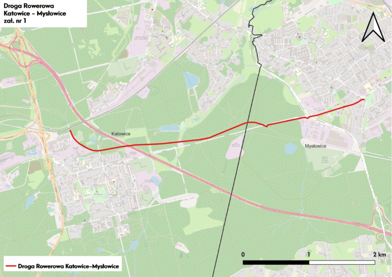 Droga rowerowa rozpocznie się w Katowicach-Brynowie, będzie biegła wzdłuż nieczynnej linii kolejowej nieopodal doliny Trzech Stawów i w dalszym biegu przez dzielnicę Giszowiec. Następnie w kierunku miasta Mysłowice będzie przebiegać wzdłuż ulicy Mysłowickiej, docierając do granicy z Mysłowicami i dalej wzdłuż ul. Mikołowskiej, aż do rejonu ronda Rotmistrza Pileckiego (os. Ćmok). Rozpoczęcie prac budowlanych na terenie Katowic jest planowane na III kwartał 2023 r.