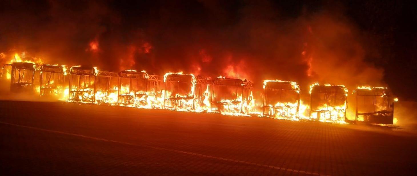 13 maja o drugiej w nocy Straży Pożarna przyjęło zgłoszenie o pożarze autobusów na terenie zajezdni przy ulicy Świętej Elżbiety w Bytomiu. Paliło się aż dziesięć autobusów.