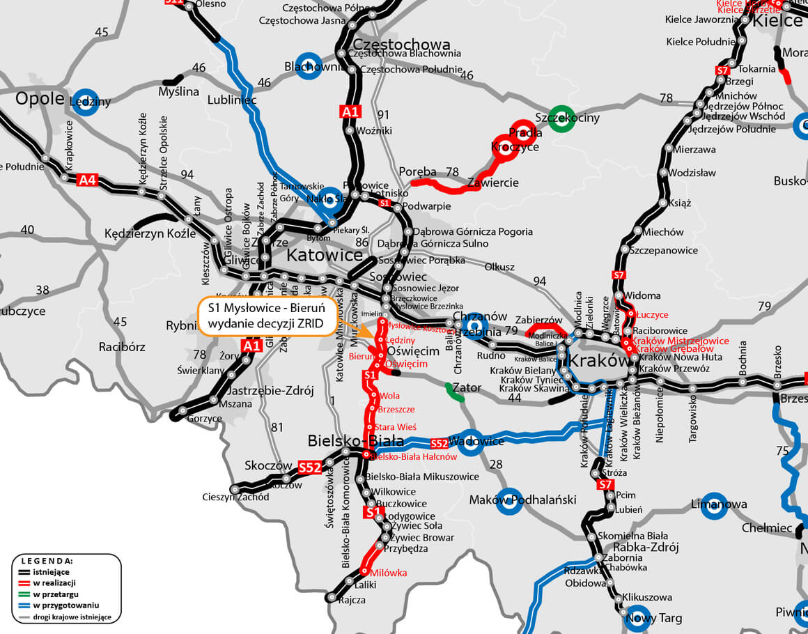 Po długim czasie oczekiwania jest decyzja o zezwoleniu na realizację inwestycji drogowej (ZRID), co umożliwia rozpoczęcie prac na ok. 10-kilometrowym odcinku S1. Trasa zaczyna się węzłem Mysłowice Kosztowy, a kończy przed węzłem Bieruń. Połączy to Metropolię GZM z Beskidami.