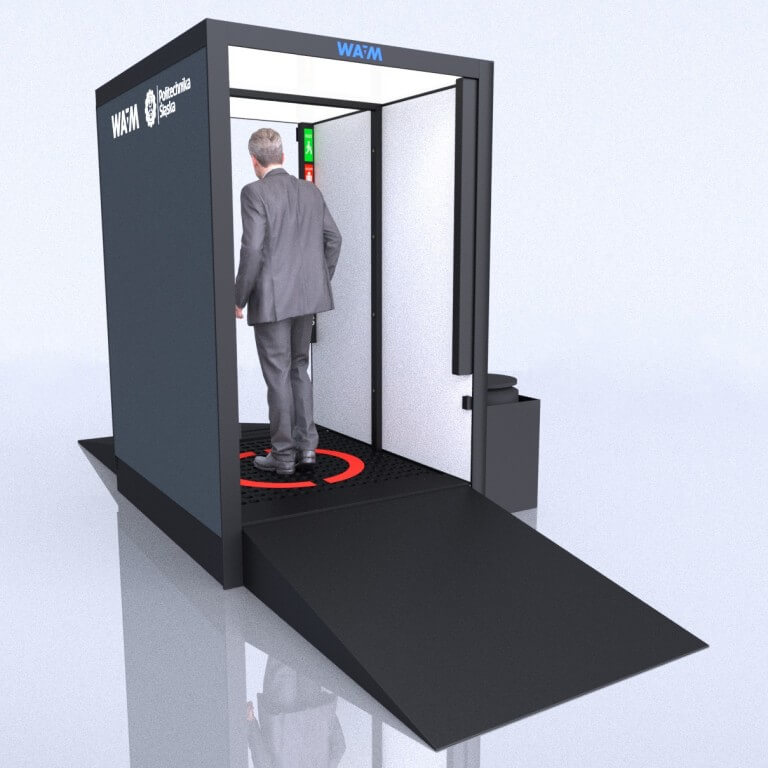 – Konstrukcja bramy różni się od bram montowanych w szpitalu. Na pierwszy rzut oka już, można zobaczyć, że jest większa, bardziej przestronna, ma zamontowane podjazdy dla wózków oraz barierki ochronne. W przypadku odwiedzających w grupach, pompa uruchamiana jest po wejściu pierwszej osoby, natomiast każda kolejna, którą wykryje czujnik laserowy, włącza dysze i sygnalizację pozycji na panelu świetlnym – powiedziała dr inż. Magdalena Bogacka z Politechniki Śląskiej, koordynatorka zespołu projektowego bramy odkażającej.