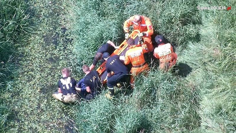 Niezwłocznie na miejsce zostali skierowani strażacy na quadach, którzy z dużym trudem wydostali uwięzioną kobietę z grząskiego terenu i udzielili jej pierwszej pomocy. Policjanci potwierdzili, że to zaginiona mieszkanka Tychów. Uratowana 63-latka przekazana pod opiekę załodze pogotowia, które przewiozło ją do szpitala. W wyniku wstępnego badania ratownicy stwierdzili u kobiety znaczną hipotermię.